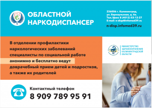 ГОСУДАРСТВЕННОЕ БЮДЖЕТНОЕ УЧРЕЖДЕНИЕ ЗДРАВООХРАНЕНИЯ «НАРКОЛОГИЧЕСКИЙ ДИСПАНСЕР КАЛИНИНГРАДСКОЙ ОБЛАСТИ»
