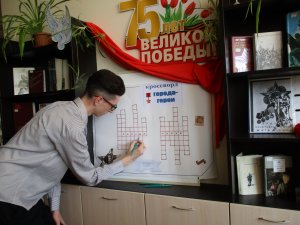 Героями в те годы становились не только люди, но и целые города. Оформленная в библиотеке выставка-кроссворд «Города-герои» предлагает читателям назвать эти города и заполнить кроссворд, а выставка-стенд «Награды Победы» знакомит читателей с историей создания орденов и медалей.
