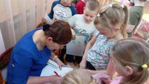 В знак признательности за встречу дошколята подготовили для Елены Александровны подарок — книгу рисунков по её сказкам.