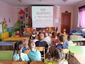 Слушая сказочный обзор книг, дети мгновенно узнавали любимых сказочных персонажей на экране. Мультпросмотр музыкальной сказки «Как Львенок и Черепаха пели песню» получился музыкальным для всех, так как дети вместе спели любимые мелодии.