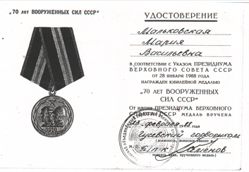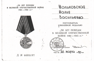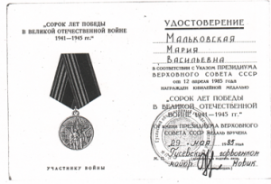 Прошло всего лишь чуть больше года, и в декабре 1943-го Мария официально стала военнослужащей Красной армии, приняв военную присягу. Отныне судьба связывала ее с боевыми частями действующей армии. Она прошла сложный боевой путь через территории Чехословакии и Польши, участвуя в освобождении европейских стран от фашизма. Завершив войну в мае 1945 года в Германии, Мария Васильевна исполнила свой долг перед Отечеством и вернулась домой рядовым поваром советской армии.
