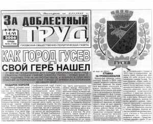 Сегодня вашему вниманию предоставляем статью А.В.Фесенко «Как город Гусев свой герб нашел».