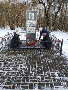 Брянская библиотека и Первомайский Дом культуры провели субботник по очистке территории у памятника С.И Гусеву и возложили цветы к подножию обелиска в день памяти Героя.