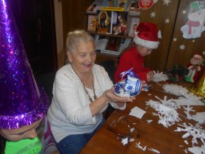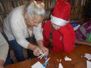 В преддверии праздника в Фурмановской библиотеке прошёл мастер-класс по изготовлению бумажной снежинки. Вырезание снежинки из бумаги – это настоящее чудо. Мы складываем простой лист бумаги, и вырезаем, вырезаем…. И, аккуратно разворачивая, понимаем, что случилось волшебство! Это не просто лист бумаги, это прелесть, зимняя сказка! Красота снежинки завораживает, притягивает взгляд, ею хочется любоваться. Своим мастерством по изготовлению снежинок поделилась читательница Фурмановской библиотеки Кириченко К. П.. Клара Павловна провела в библиотеке мастер – класс. В знак благодарности специалист Фурмановского Дома культуры преподнесла Кларе Павловне подарок - оригинальную кормушку для птиц.