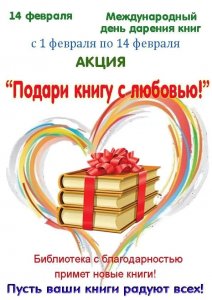 14 февраля во многих странах мира проходит МЕЖДУНАРОДНЫЙ ДЕНЬ КНИГОДАРЕНИЯ.