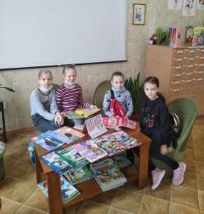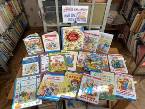 Сегодня в Центральной детской библиотеке день веселого чтения: ребята знакомятся с книжной выставкой и читают весёлые стихи.