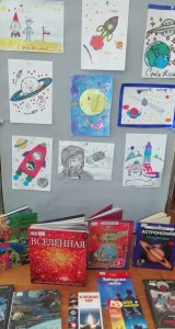 В эти чудесные дни детям представилась возможность поучаствовать в викторине «Человек открывает Вселенную», в конкурсе рисунков «Космические фантазии», в познавательно – развлекательной программе «Первоапрельский кураж». Главными виновниками торжества являлись, конечно же, книги и для читателей были оформлены книжные выставки: " Книжная радуга", «Сказки путешествуют по свету», «Эта удивительная Вселенная», где ребята могли выбрать книгу по душе.
