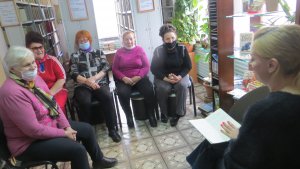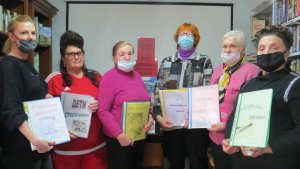 Заведующая библиотекой Лукша М.А. представила участникам мероприятия тематические папки материалов о родном крае, о родных поселках, о тех, кто первыми трудились на восстановлении области. Все эти материалы занимают почетное место на полках в Центре краеведческой информации.