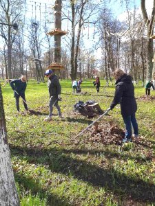 Коллектив МБУ «Гусевское библиотечное объединение», вооружившись необходимым инвентарем, с удовольствием приводили в порядок территорию физкультурно–оздоровительного комплекса.