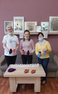 Они приготовили подарки для получателей социальных услуг Гусевского комплексного центра социального обслуживания населения. Мастерицы с золотыми сердцами (Беляева Г.М., Ковалеренко С.В., Ахметова Зульфия) связали тапочки для занятий танцами воспитанникам социально-реабилитационного отделения.