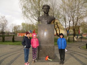 Пять учащихся МОУ СОШ №1 имени Сергея Ивановича Гусева и МАОУ «Средняя образовательная школа №3» посетили пять значимых мест Гусевского городского округа: могилу неизвестного солдата близ поселка Лермонтово, братские могилы в поселках Фурманово и Приозерное, Аллею славы и памятное место у школы №1, где установлен бюст Сергея Ивановича Гусева, чье имя с гордостью носит наш город. Несмотря на непогоду и сильный ветер, ребята смогли прочитать подготовленные стихотворения и возложить цветы к подножию этих памятников.