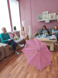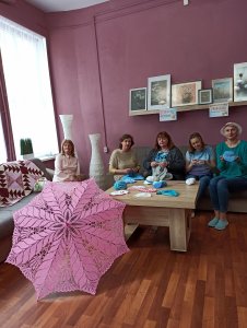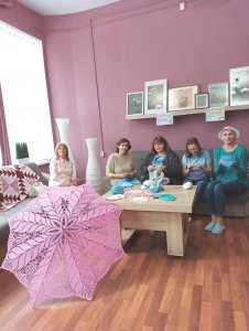 Дружный коллектив рукодельниц при творческой библиотечной мастерской «Вяжем настроение» уже третий год радует своим позитивным общением и созданием великолепных сезонных вещей. Два часа общения, обмен эмоциями и опытом рукоделия – это далеко не полный перечень того, как прошел в субботу мастер – класс " Эти руки золотые, для нас шедевры создают " в читальном зале Центральной библиотеки.