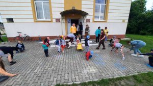 В этот праздничный день в гости к ребятам пришли Буратино, Мальвина, лиса Алиса и Карабас - Барабас. Дети выполняли задания сказочных персонажей, участвовали в играх, попутно собирая буквы с названием места, где был спрятан золотой ключик. Дружно и весело участвовали в танцевальном флешмобе. С удовольствием рисовали мелками на асфальте.
