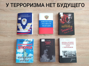 Выставка- обзор "У терроризма нет будущего" в Центральной библиотеке Центральная библиотека приглашает на выставку- обзор "У терроризма нет будущего". Новости 0 0 Жалоба 770 biblioteka от 10-06-2021, 08:30