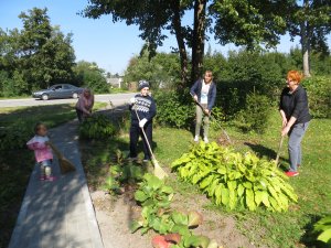 После уборки поселковых улиц акция продолжилась на территории Лермонтовской библиотеки. Участники акции подстригали ветви раскидистой ивы, собирали редкую, уже опавшую и пожелтевшую листву, пропалывали траву в цветниках.