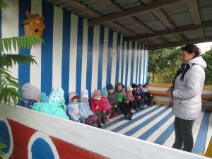 В ходе ее проведения на деревьях детского сада дошкольниками был установлен скворечник. Перед началом акции заведующая библиотекой Лукша М.А. и воспитатель группы Тецлав И.О. рассказали детям об особенностях природы в осенний период, о том, как необходима помощь птицам в холодное время года.