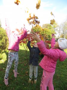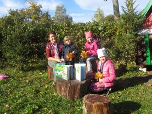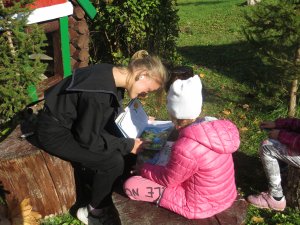 Занятие проводилось в прекрасное время года, когда можно понаблюдать за переменами в природе, за пожелтевшими и слегка опавшими листьями, золотом рассыпанными под ногами. Бери, любуйся, угадывай какое дерево или кустарник подарило их и бросило вам под ноги. Где еще, как ни на природе можно заняться чтением «зеленых сказок», сказок о природе, о жизни насекомых под золотым покровом листвы.