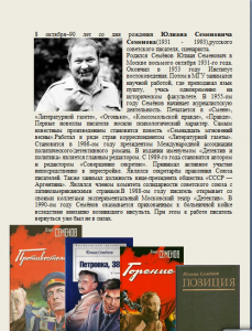 Центральная библиотека продолжает литературную рубрику «Юбилей писателя - радость для читателя!»