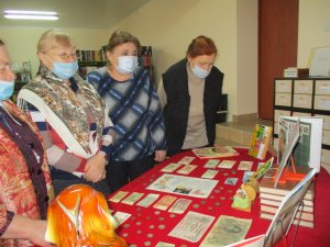 К этому мероприятию в библиотеке была оформлена выставка «Денежные истории». На выставке представлены монеты и бумажные деньги разного достоинства и разного времени, когда они были в обороте у населения, сохранившиеся у участников клуба. На выставке также представлены книги и журналы о деньгах.