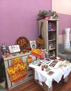 Вниманию читателей представлены издания, которые знакомят с историей русского быта, традициями и праздниками русского народа, различными видами старейших ремесел. На выставке можно увидеть предметы быта, которые стали символами России и прочно вошли в нашу национальную культуру: предметы одежды, ручники, скатерти ручной работы – они символизируют простой и нехитрый уклад жизни Руси.