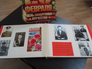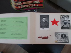Накануне Дня защитника Отечества в целях воспитания у подрастающего поколения чувства гордости за свое Отечество, ответственности за судьбу страны и долга перед ней Покровская библиотека подготовила и оформила фотоальбом «Служит Родине солдат». В альбоме представлены фотографии жителей поселков Михайловка, Приозерное, Краснополье, Покровское, служивших в Советской армии и в Российской армии.