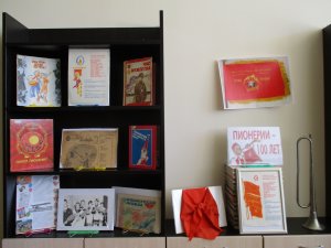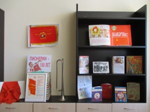 На выставке также представлены книги и журналы о пионерах-героях, которые в Великую Отечественную войну участвовали в боевых действиях и сражались в партизанских отрядах.