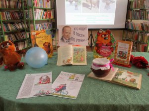 Литературно-игровая программа прошла в дружеской и веселой обстановке и получилась весьма полезной и познавательной для ребят. К этому мероприятию в библиотеке была оформлена книжно-предметная выставка «Кто ходит в гости по утрам…»