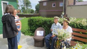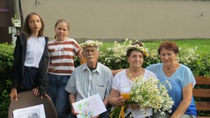 Заведующая библиотекой Лукша М.А. и подростки подарили им прекрасные стихи, поздравления с праздником и, конечно же, букет белых ромашек. Круцан Дарья и Бражников Ярослав подарили всем хорошее настроение и замечательное стихотворение Ольги Новиковой.