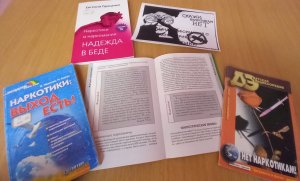 В библиотеке читатели могут познакомиться с печатной продукцией: буклеты и закладки «Мне не все равно. А тебе?», «Наркомания – жизнь без будущего.
