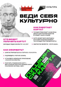 Друзья, с 2021 года у молодёжи России есть возможность бесплатно посетить культурные мероприятия по всей стране. И это всё благодаря «Пушкинской карте».