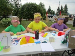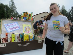 На мастер-классе «Бумажное чудо» взрослые и дети с помощью бумаги, клея, скотча, ножниц мастерили интересные поделки: ежика, кораблик, ракету, сову, рыбку. Участники акции «Книга-сюрприз», по краткому, загадочному описанию отгадывали автора и название книги и получали за это призы. А из «Книжного чемоданчика» жители и гости праздника могли выбрать любую понравившуюся им книгу и взять ее домой. К концу дня «Книжный чемоданчик» опустел почти полностью.