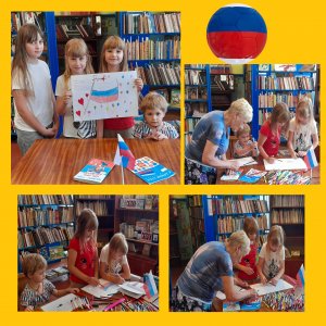 Библиотекарь Цымерман И.И. рассказала о том, когда впервые появился в России государственный флаг и кто его ввел. После беседы ребята нарисовали флаг Российской Федерации, объясняли трактовку значений цветов триколор.