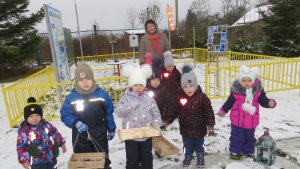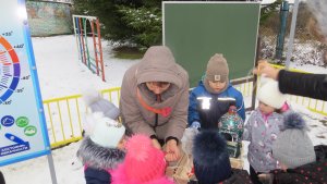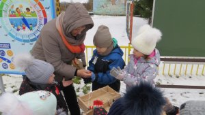 Участники клуба «Почитай-ка» вместе с руководителями клуба: заведующей Лермонтовской библиотекой М.А. Лукша, воспитателем группы И.О. Тецлав и сотрудником детского сада Ю.П. Семенченко подготовили и провели трехдневную акцию «Покормите птиц зимой». В рамках акции ребята узнали о жизни птиц, как устроены птицы, какие птицы не улетают в теплые края, а зимуют вместе с нами. Дети внимательно посмотрели презентацию «Зимующие птицы», познакомились с книгами, на страницах которых увидели красивых птиц. Еще один день понадобился ребятам для прогулки по территории детского сада, где ребята вместе с руководителями клуба, развешивали кормушки, сделанные руками родителей. В каждую кормушку ребята самостоятельно насыпали корм для птиц и ежедневно будут наблюдать за кормушками и подсыпать корм.