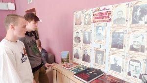 Хранителями памяти поколений выступают книги и в залах библиотеки оформлены книжные выставки «Память о войне нам книга оставляет», «Поклон тебе, Великая Победа». Литература, представленная на выставках, рассказывает о беззаветном героизме, о подвигах, совершенных людьми во имя Родины, что нам дорого и свято.