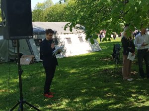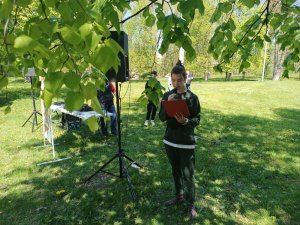 На площадке для любителей поэзии работал «Поэтический микрофон». Горожане читали стихотворения о войне и о Победе. Одинаково торжественно звучали произведения известных поэтов и гусевских авторов.