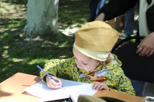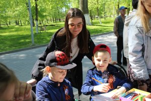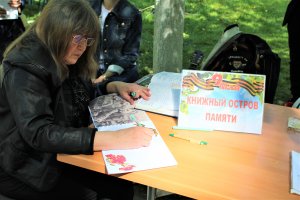 9 мая МБУ «Гусевское библиотечное объединение» организовало интерактивную площадку «Книжный остров памяти». Для юных горожан и гостей города были проведены мастер-классы «Память поколений», «Голубь мира». Совсем маленькие ребята смогли раскрасить тематические картинки.