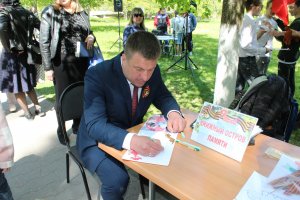 Жители города оставляли запись о своих воевавших родственниках в альбоме «Свет памяти». Альбом будет пополняться и храниться в библиотеке. Добавить запись можно в любое время.