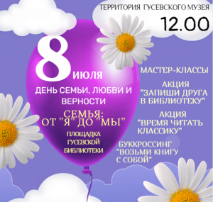 Приглашаем вас 8 июля в 12:00 отметить с нами, с Гусевской библиотекой, День семьи, любви и верности.