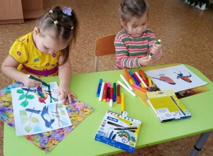 Знакомство с зимующими птицами закрепилось раскрашиванием рисунков птиц. Ребята научились делать кормушки из обыкновенных пятилитровых пластмассовых бутылок.