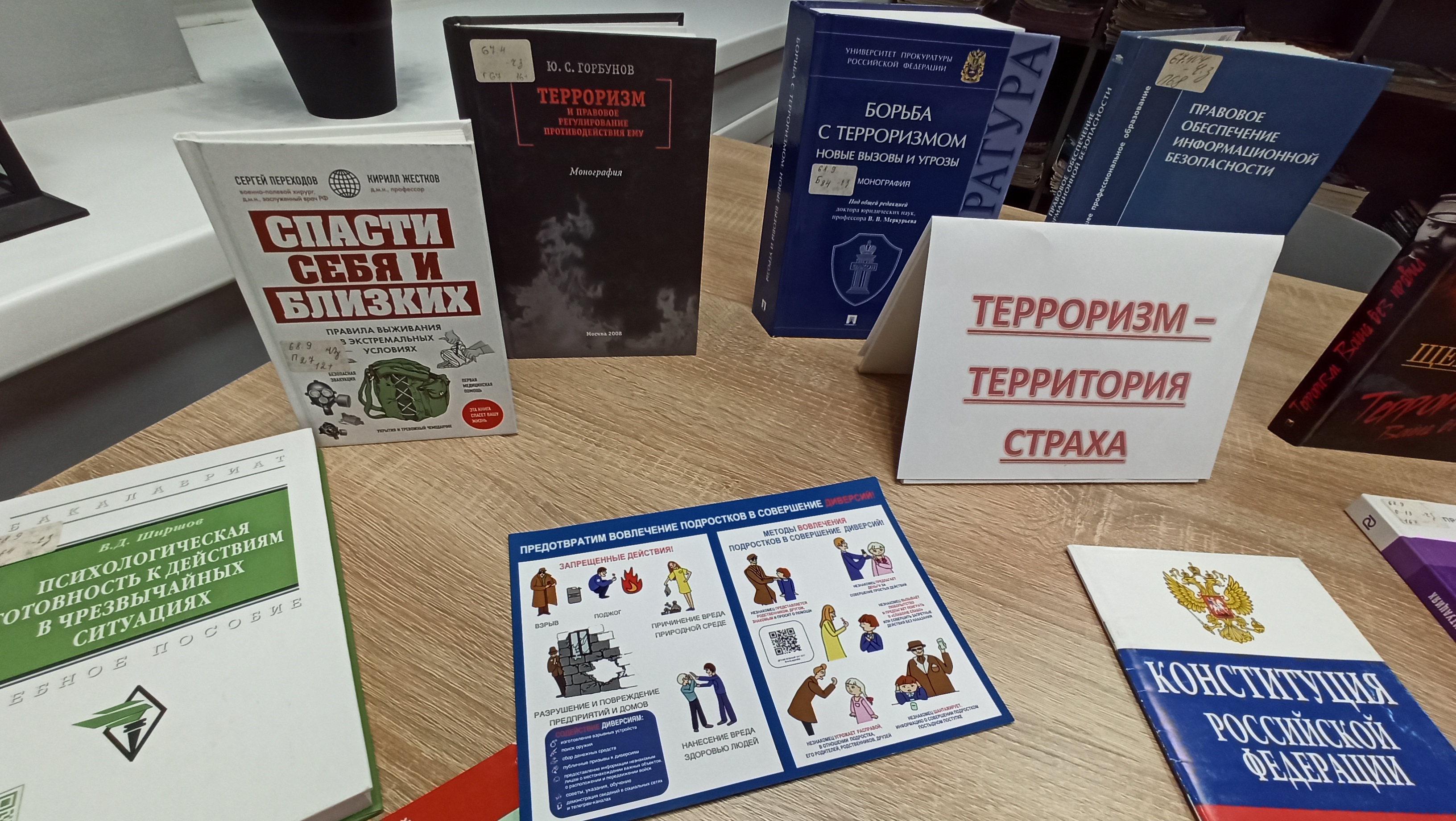 В Центральной библиотеке оформлена тематическая книжная выставка «Терроризму — НЕТ!». Выставка посвящена важной и актуальной теме противодействия терроризму, привлечения внимания общественности к вопросам безопасности и формирования культуры толерантности и взаимопонимания между людьми разных национальностей и вероисповеданий.